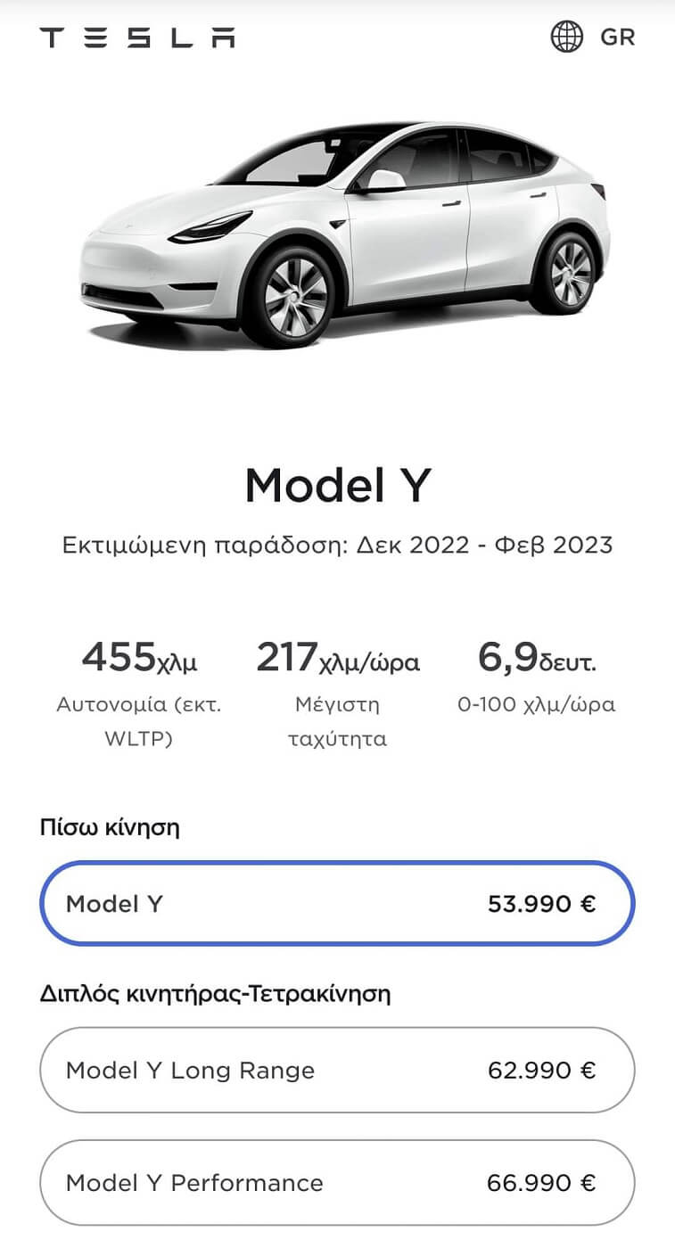 Μέχρι τώρα, το Υ ερχόταν σε δύο εκδόσεις, αμφότερες με ηλεκτροκινητήρες μπρος-πίσω και τετρακίνηση, αλλά και τη μεγάλη μπαταρία. Απουσίαζε δηλαδή μια φθηνότερη έκδοση, σαν την SR+ του Model 3, με τη μικρότερη μπαταρία και κινητήρα-κίνηση μόνο στον πίσω άξονα. Τώρα, με επιβάρυνση μόλις 1.000 € σε σχέση με το ομόσταυλο sedan, μπορείτε να αποκτήσετε το αμερικάνικο SUV, κάνοντας βέβαια κάποιες εκπτώσεις σε σχέση με την έκδοση Long Range.