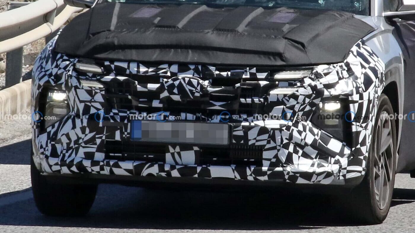 Κατασκοπευτικές φωτογραφίες αποκαλύπτουν κάτι πολύ ενδιαφέρον: το σήμα κατετεθέν του σημερινού Tucson, οι τεράστιες γρίλιες στη μάσκα, έχουν πλέον μικρύνει. Θα ήταν δύσκολο να το παρατηρήσετε εάν δεν ήταν τοποθετημένη η μπροστινή πινακίδα κυκλοφορίας, αλλά πλέον είναι σαφές. Σήμερα, οι γρίλιες ξεκινούν ακριβώς πάνω από τη μάσκα, ενώ στο νέο μοντέλο υπάρχει σαφώς οριζόντιο τμήμα του προφυλακτήρα από πάνω της.