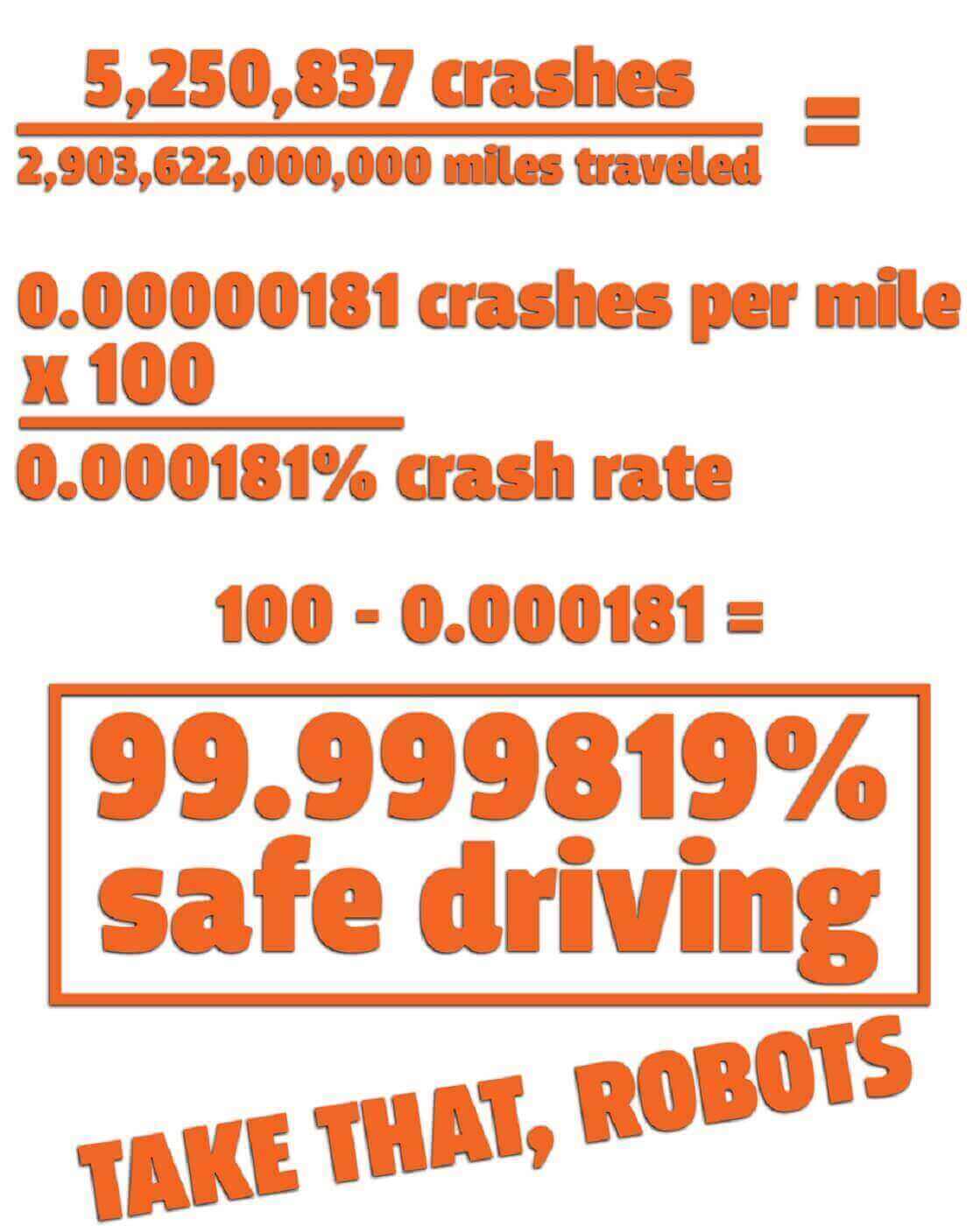Οι άνθρωποι αποφεύγουν ατυχήματα 99.999819% του χρόνου, τα αυτόνομα αυτοκίνητα πρέπει να είναι ακόμα πιο ασφαλή