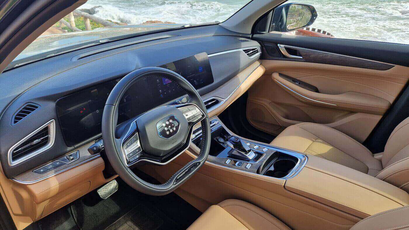 Τελικά πού είναι η παγίδα; Άραγε θα μπορούσε να μην υπάρχει; Στην πράξη υφίστανται δύο αστερίσκοι, με τον ένα μπορείς να ζήσεις, με τον δεύτερο όχι – κυριολεκτικά. Ο πρώτος αφορά ένα μικρό συμβιβασμό σε επίπεδο ραφιναρίσματος. Του λείπει το τελευταίο 10% για να θεωρηθεί κορυφαίο. Γενικώς το E5 σού βγάζει την αίσθηση ότι είναι εξαιρετικό επειδή ακριβώς έχει τη δεδομένη τιμή, όχι με απόλυτα κριτήρια. Όταν το εξετάζεις σε επιμέρους τομείς, δεν μπορεί να ανταγωνιστεί τα καλύτερα της κατηγορίας, επίσης κινέζικα κατά κόρο. Πάρε για παράδειγμα την απόσβεση της ανάρτησης. Δε στέκεται στο επίπεδο των υπόλοιπων, θέλει ακόμα λίγη δουλειά, παρ΄ότι έχει πίσω ανάρτηση πολλαπλών συνδέσμων. Αντιδρά ξερά και μπορεί να σε δυσκολέψει όταν το οδόστρωμα είναι κακό. Ύστερα, βλέπεις ότι έχουν παλέψει να κρατήσουν χαμηλά το κόστος σε μικροπράγματα. Ας πούμε στον υπολογιστή ταξιδίου, έχεις μόνο μία διαθέσιμη ένδειξη κι οθόνη. Ή η ηλιοροφή, απαιτεί να έχεις τον διακόπτη συνέχεια πατημένο. Το θερμαινόμενο κάθισμα ζεσταίνει σωστά στο έδρανο αλλά όχι στη μέση. Το infotainment είναι πολύ φωτεινό το βράδυ, όσο και να το χαμηλώσεις. Θα σε ενοχλήσει σε επαρχιακούς δρόμους που δεν έρχεται φως από έξω. Οι εξωτερικές χειρολαβές έχουν μια φθηνή αίσθηση, δε σε γεμίζουν αυτοπεποίθηση ότι θα συνεχίσουν να έχουν στιβαρή λειτουργία σε βάθος χρόνου. Η εταζέρα του πορτ-μπαγκάζ δε φτάνει μέχρι μπροστά, αφήνοντας οπτική πρόσβαση στον χώρο αποσκευών, ακόμα κι όταν είναι πλήρως κλειστή. Όταν συγχρονίζεις το κινητό στο Android Auto και σε καλέσει κάποιος στο τηλέφωνο, δεν εμφανίζει το όνομά του. Το δε τηλέφωνο, αν έχεις ενεργοποιημένους τους Χάρτες, μετά από λίγο υπερθερμαίνεται και δεν μπορεί να φορτιστεί. Κάνει κακό στην μπαταρία του κινητού και νομοτελειακά θα σου σβήσει. Οπότε ο ασύρματος φορτιστής είναι χρήσιμος μόνο όταν δεν έχεις συνδέσει το smartphone με το Android Auto. Το κλειδί δεν έχει το σήμα ή το λογότυπο της εταιρίας. Δεν έγινε και τίποτα, απλώς το αναφέρω επειδή μου έκανε εντύπωση. Δεν έχω συναντήσει άλλο κλειδί που να μη φανερώνει την ταυτότητα του κατασκευαστή. Επίσης αμελητέο αλλά ένδειξη της προσέγγισης χαμηλού κόστους: η ειδοποίηση τυφλού σημείου, που ενεργοποιείται όταν στην άκρη της λωρίδας υπάρχει συνεχόμενη βλάστηση ή άλλο σταθερό αντικείμενο.