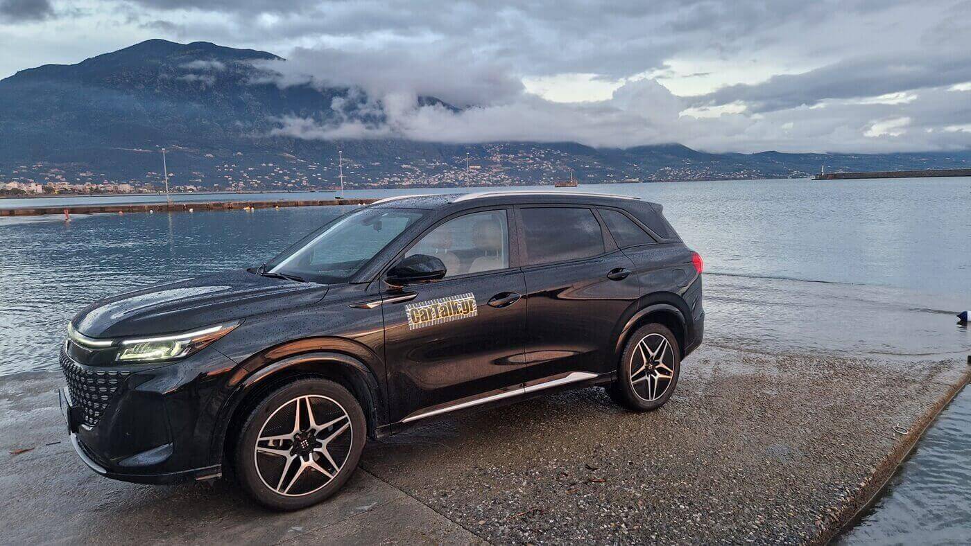 Πάντως, η εικόνα που βγάζει στον δρόμο είναι σωστή. Πέρα από την ξερή απόσβεση στην πόλη, δε χαζεύει στον αυτοκινητόδρομο, ούτε το νιώθεις να πλέει ή να βουτά υπερβολικά στο φρενάρισμα. Ακόμα και αν το πιέσεις, δεν αντιδρά άτσαλα και δε θα σε φέρει σε δύσκολη θέση. Μιλάμε πάντα για χρηστή χρήση, σε καμία περίπτωση δεν πρόκειται για μοντέλο που εξάπτει τα οδηγικά πάθη. Αν μάλιστα επιλέξεις την πιο σπορτίφ ρύθμιση του τιμονιού, τότε το λες ακόμα και συμπαθητικό, για τα δεδομένα της κλάσης. Όταν ξεκινάς το ταξίδι φορτισμένος, η μπαταρία κατεβαίνει μέχρι το 20% και μετά παίρνει μπρος ο βενζινοκινητήρας. Να αναμένεις περί τα 55 χιλιόμετρα ηλεκτρικής κίνησης, με μέση κατανάλωση μόλις 17.3 kWh στα 100, νούμερο πολύ καλό για PHEV. Αν το ταξίδι σου είναι κυρίως σε φλατ διαδρομές, καλύτερα να εξαντλήσεις όλη την μπαταρία στην αρχή. Αν όμως έχει αρκετά υψομετρικά, όπως η μετάβαση στην Καλαμάτα που επιχείρησα εγώ, το σωστό είναι να ρυθμίσεις την μπαταρία να μην πέσει κάτω από το 40%. Έτσι, θα υπάρχει αρκετό απόθεμα ισχύος όταν πιάσουν οι ανηφοριές στο Αρτεμίσιο. Εγώ δεν το έκανα, γιατί μετρούσα την ηλεκτρική αυτονομία σε αστικό περιβάλλον, οπότε εξάντλησα την μπαταρία στην αρχή. Αλλά αν το Ε5 ήταν δικό μου, θα προτιμούσα να κάψω λίγο παραπάνω στην πόλη, για ένα πιο ξεκούραστο ταξίδι. Έχοντας ρυθμίσει την ταχύτητα ταξιδίου στα 120 και με βάρος επιβατών περί τα 200 κιλά, το DFSK μπορούσε μεν να κρατήσει τα 120, αλλά με πολύ θόρυβο από το μοτέρ. Σκέψου ότι η μπαταρία έδωσε ό,τι μπορούσε έως το 12%, βγήκε ένδειξη ότι δε συμμετέχει πλέον στο πανηγύρι και μετά απομείναμε 2+ τόνοι με 102 ατμοσφαιρικούς ίππους και 135 Nm, λογικό ήταν να του βγει η γλώσσα. Αν μάλιστα ήταν πιο φορτωμένο ή ήθελα να κρατάει πχ. τα 130, λογικά δε θα μπορούσε να αντεπεξέλθει.
