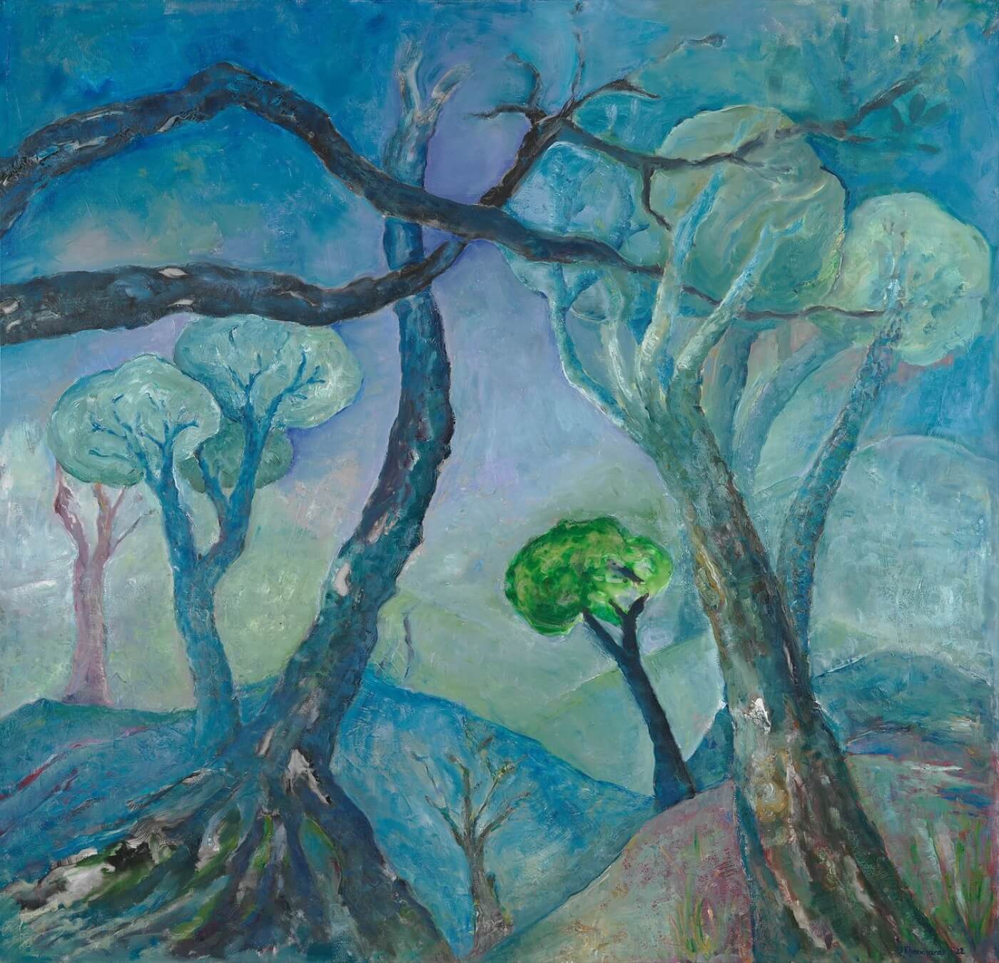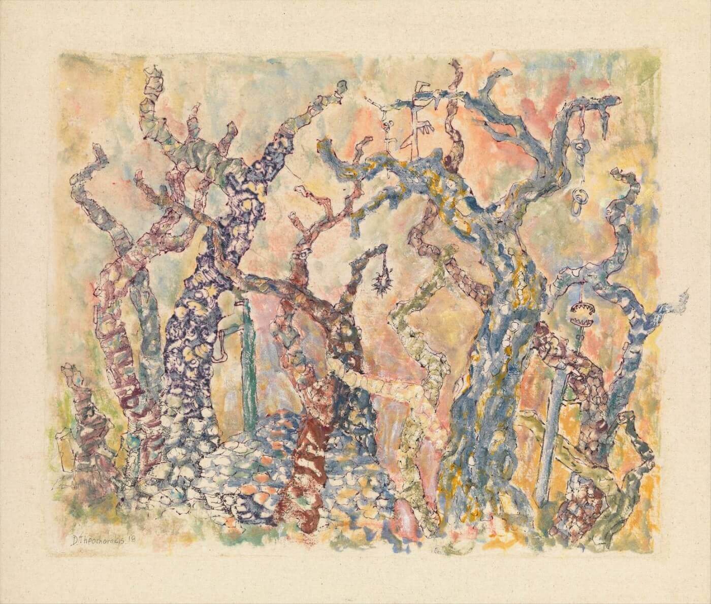 Στο επίκεντρο της νέας της καλλιτεχνικής δημιουργίας βρίσκεται η φύση, μέσα από αρχέγονα, φαντασιακά τοπία δένδρων. Τα δένδρα στην τέχνη της Ντένης Θεοχαράκη αποκτούν ανθρώπινη μορφή. Τα κλαδιά τους περιπλέκονται μεταξύ τους κι αποκτούν κίνηση, γίνονται χέρια. Δένδρα με βαθιά χωμένες τις ρίζες τους στη γη που υψώνονται δυναμικά, συνδέοντας τον επίγειο με τον ουράνιο κόσμο.