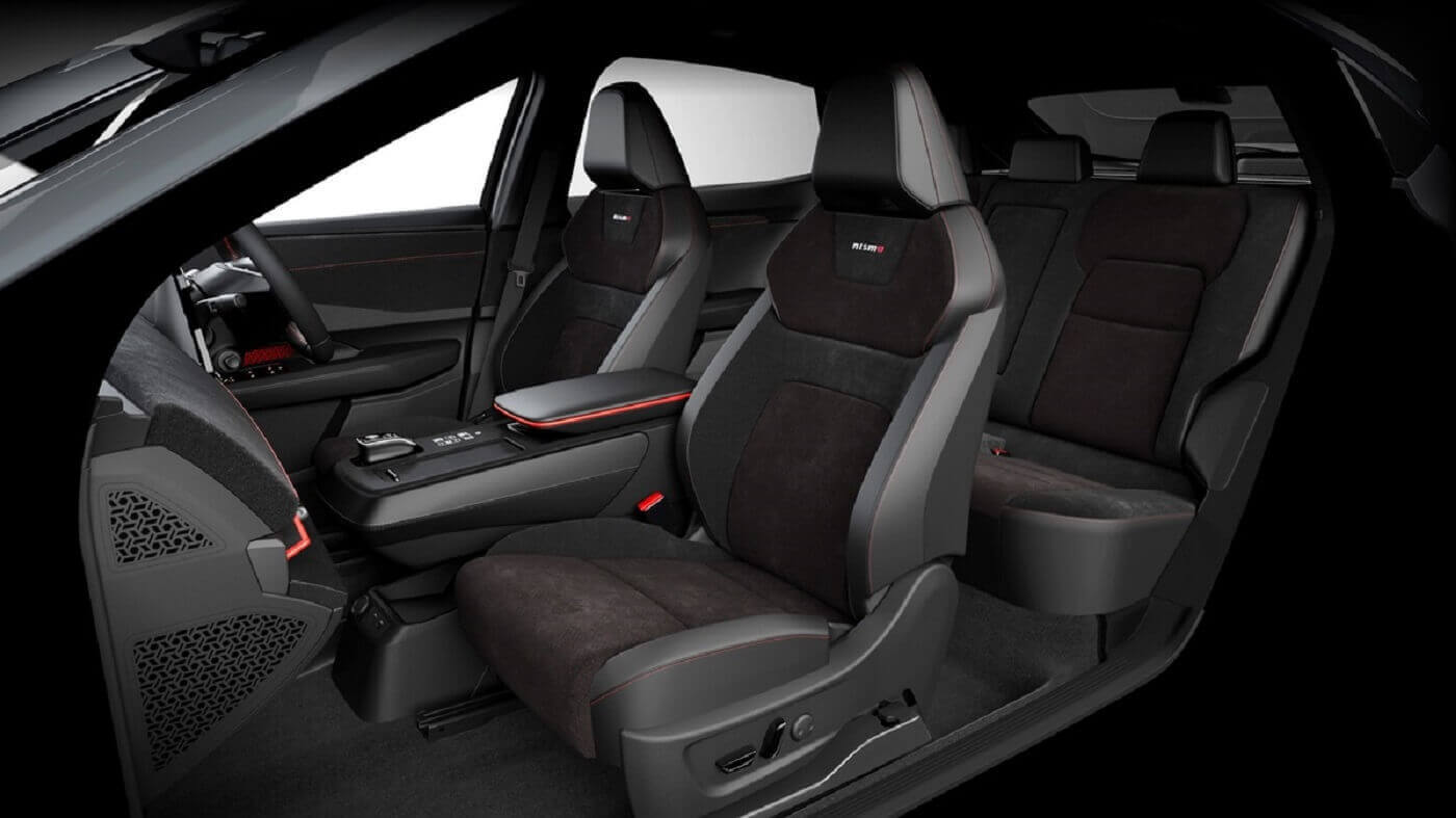 Το ολοκαίνουργιο Ariya NISMO διαθέτει ένα σχολαστικά επανασχεδιασμένο εσωτερικό, από τα καθίσματα μέχρι τα εσωτερικά του φινιρίσματα, παρέχοντας μια premium εμπειρία για όλους. Τα καθίσματα, διακοσμημένα σε σουέντ υλικό και με ραμμένα λογότυπα NISMO, είναι ειδικά σχεδιασμένα για σπορ οδήγηση, προσφέροντας βελτιωμένη υποστήριξη και κράτημα που αγκαλιάζει το σώμα σε απότομες στροφές, αλλά όχι σε βάρος της άνεσης.