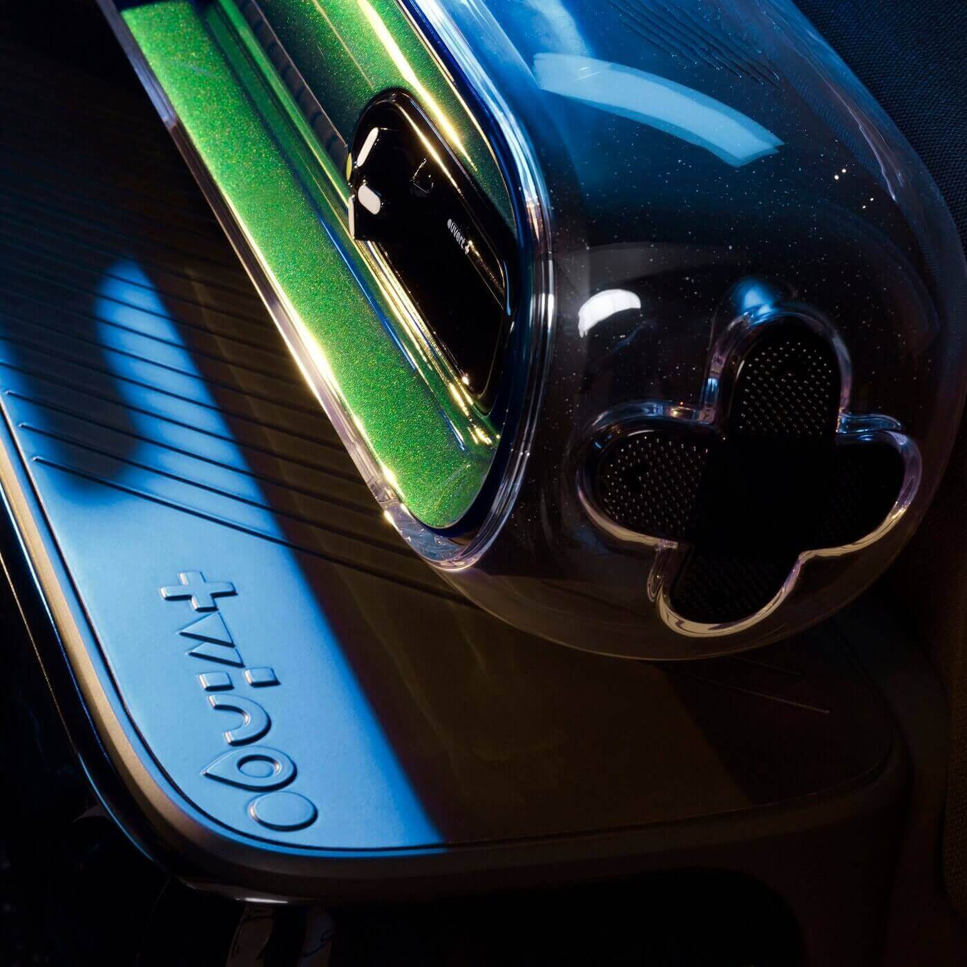 Το άνετο ταμπλό του Twingo E-Tech electric prototype, έχει κυλινδρικό σχήμα, μοιάζει να αιωρείται, ενώ είναι τόσο ελκυστικό όσο και λειτουργικό. Πρόκειται για ένα εξαιρετικά σύγχρονο όχημα με ψηφιακό πίνακα οργάνων οθόνης 7’’ και κεντρική οθόνη πολυμέσων 10,1’’. Εκτός από δυνατότητες δικτύωσης, τα ξεχωριστά του χαρακτηριστικά προσθέτουν μια φρέσκια, δυναμική αύρα στην εμπειρία του εσωτερικού, χάρη στα μοναδικά γραφικά τους. Δίπλα στα τρία χειριστήρια του κλιματισμού, το κόκκινο πλήκτρο για τα alarm, μέσα σε μία διάφανη φούσκα, ξεχωρίζει αισθητικά, ξυπνώντας μνήμες από το αρχικό Twingo.