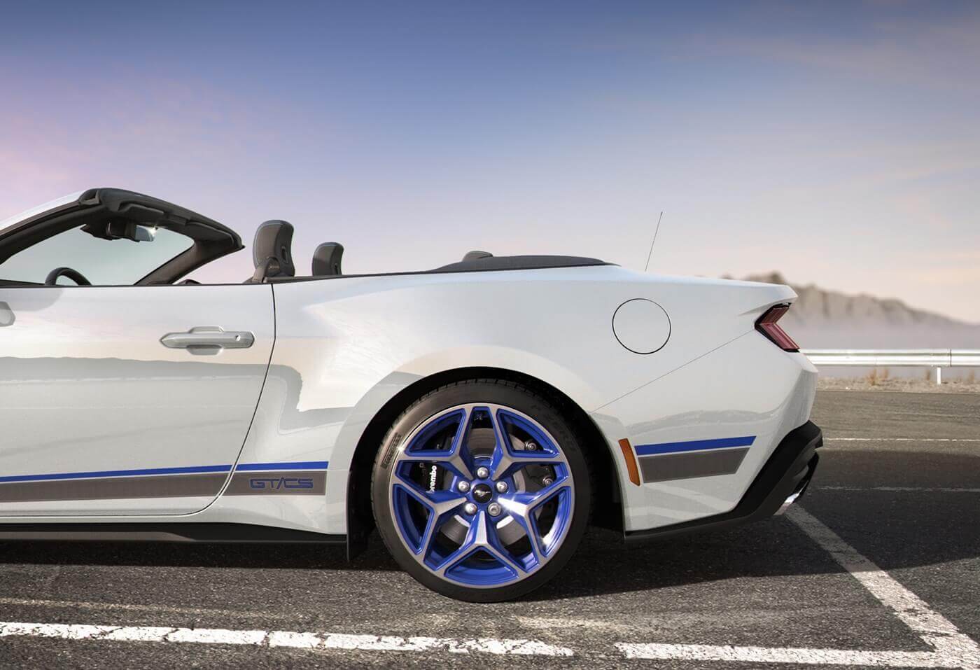 Διαθέσιμη σε οκτώ εντυπωσιακές εξωτερικές χρωματικές επιλογές, όπως η Iconic Silver και η Vapour Blue, η έκδοση California Special ξεχωρίζει για τις διακριτικές λωρίδες στις πλαϊνές της επιφάνειες που συνδυάζουν φινίρισμα Medium Light Rave Blue και High και Low Gloss Black. Αυτές φέρουν μία μοναδική επιγραφή GT/CS που είναι σχεδόν αόρατη σε χαμηλό φωτισμό, αλλά γίνεται πολύ πιο εμφανής στο φως του ήλιου. Μαύρα πλαίσια κοσμούν τους προβολείς, ενώ οι ζάντες αλουμινίου 19 ιντσών διαθέτουν κατεργασμένη επιφάνεια με λεπτομέρειες Rave Blue, που συμπληρώνονται από ένα σήμα GT/CS στην εμπρός μάσκα και ένα λογότυπο GT στο πορτμπαγκάζ, αμφότερα στο ίδιο χρώμα.