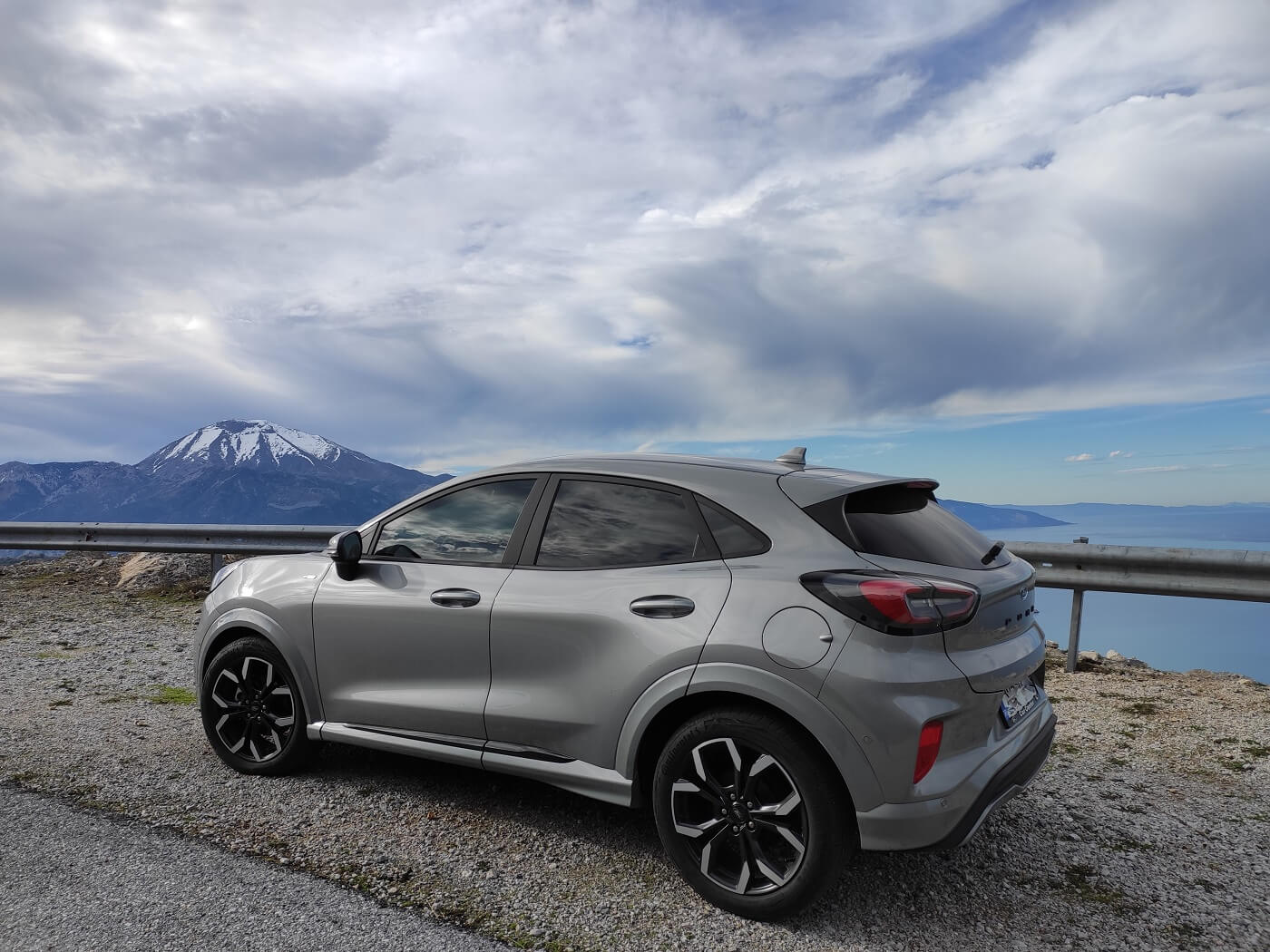 Η θέση οδήγησης είναι πολύ καλή. Κάθεσαι σχετικά ψηλά (νομίζω η Ford δίνει 16.6 εκατοστά ύψος για το Puma) και μπαίνεις χωρίς να σκύβεις – σημαντικό για όσους έχουν μέση που έχει αρχίσει να διαμαρτύρεται… Έχεις καλή ορατότητα και προς τα έξω και προς τον πίνακα οργάνων ενώ η εργονομία είναι εξαιρετική – όλα είναι εκεί που περιμένεις να τα βρεις. Τα ελαφρώς μπάκετ καθίσματα θα δυσκολέψουν λίγο τους πιο εύσωμους αλλά προσφέρουν πολύ καλή στήριξη. Τα καθίσματα στην έκδοση ST Line X είναι ημιδερμάτινα με κόκκινες ραφές – πραγματικά πανέμορφα, αλλά στο θέμα της άνεσης είναι λίγο σκληρότερα από όσο θα τα ήθελα.