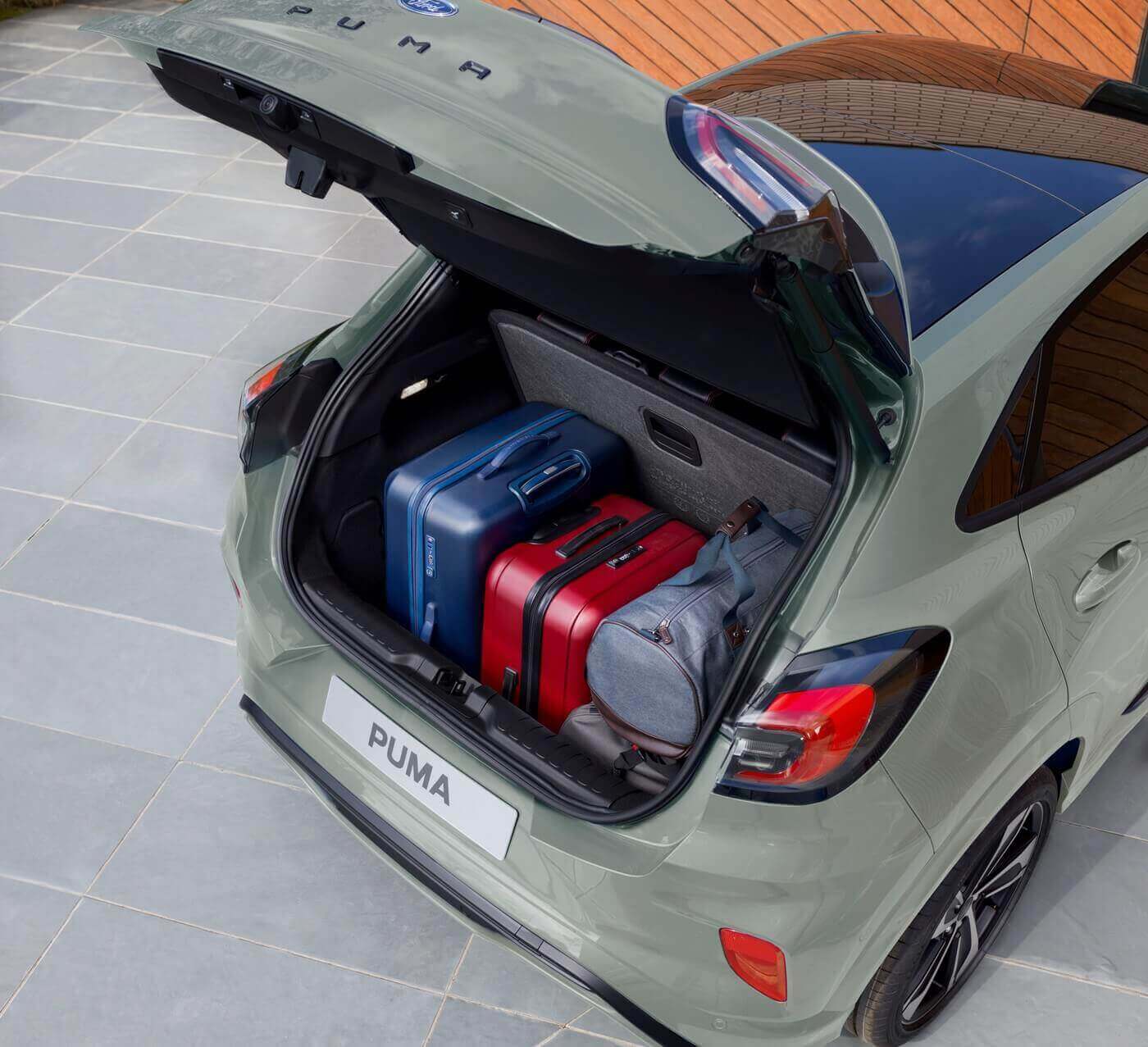 Δύο από τα κορυφαία πλεονεκτήματα που κάνουν το Ford Puma να ξεχωρίζει στην κατηγορία του είναι η πρακτικότητα και οι κορυφαίοι χώροι που εξασφαλίζει σε πραγματικές συνθήκες χρήσης. Χάρη στην έξυπνη διαμόρφωση του αμαξώματος και το καινοτόμο MegaBox, ο χώρος αποσκευών φτάνει τα 456 λίτρα με τα πίσω καθίσματα στη θέση τους, ενώ με την πλήρη αναδίπλωσή τους η μέγιστη χωρητικότητα αγγίζει τα 1.126 λίτρα. Το μοναδικό MegaBox έρχεται να προσθέσει έναν επιπλέον αποθηκευτικό χώρο 80 λίτρων στο δάπεδο του χώρου φόρτωσης ώστε να είναι εφικτή η μεταφορά αθλητικού ή «βρώμικου» εξοπλισμού, ογκωδών αντικειμένων ή ακόμα περισσότερων αποσκευών – και όλα αυτά σε ένα αμάξωμα μήκους μόλις 4.3 μέτρων που προσφέρει κορυφαία ευελιξία μέσα στην πόλη, ενώ παράλληλα είναι ικανό για ταξίδια μεγάλων αποστάσεων.