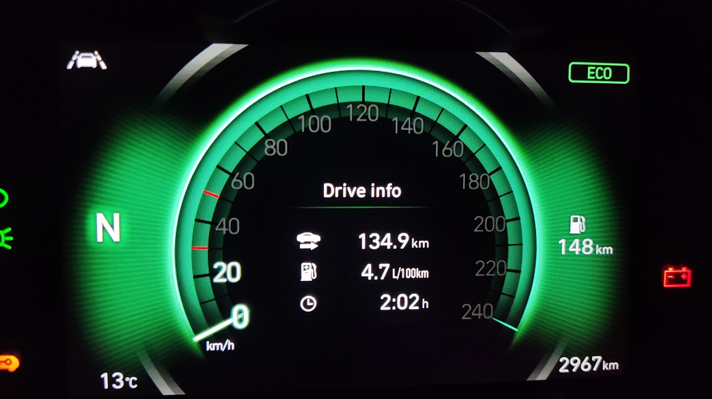 Καλύτερο θα ήταν να μην έλειπαν στοιχεία εξοπλισμού ενεργητικής ασφάλειας που θεωρούνται λόγος για να αλλάξεις αυτοκίνητο. Ακόμα κι αν επιλέξετε το αυτόματο N Line με τους 159 ίππους που αγγίζει τα 26 χιλιάρικα, δε θα απολαύσετε Adaptive Cruise Control, ούτε ειδοποίηση τυφλού σημείου κι αυτά είναι βοηθήματα που κάνουν την καθημερινότητα πιο ξεκούραστη, ενώ σώζουν ζωές. Όχι πως τα ADAS συστήματα απέδιδαν άψογα. Η ειδοποίηση για την πρόσθια σύγκρουση πανικοβάλλεται και χτυπάει πριν καν υπάρξει ζήτημα, μάλλον σε αγχώνει παρά σε βοηθά. Το lane assist σού στρίβει γλυκά και καλοδεχούμενα το τιμόνι στις καμπές, αλλά κάνει έναν εκνευριστικό ήχο όταν πατήσεις τη διακεκομμένη. Αντίστοιχα εκνευριστική είναι η εμμονή της Hyundai στην εκκίνηση: για να πάρει μπροστά, πρέπει να πατάς συμπλέκτη. Και φρένο. Και να έχεις επιλέξει νεκρά στο κιβώτιο. Αν αμελήσεις κάποια από τις τρεις συνθήκες, απλώς μένεις εκεί να κοιτάς απορημένος το ταμπλό.