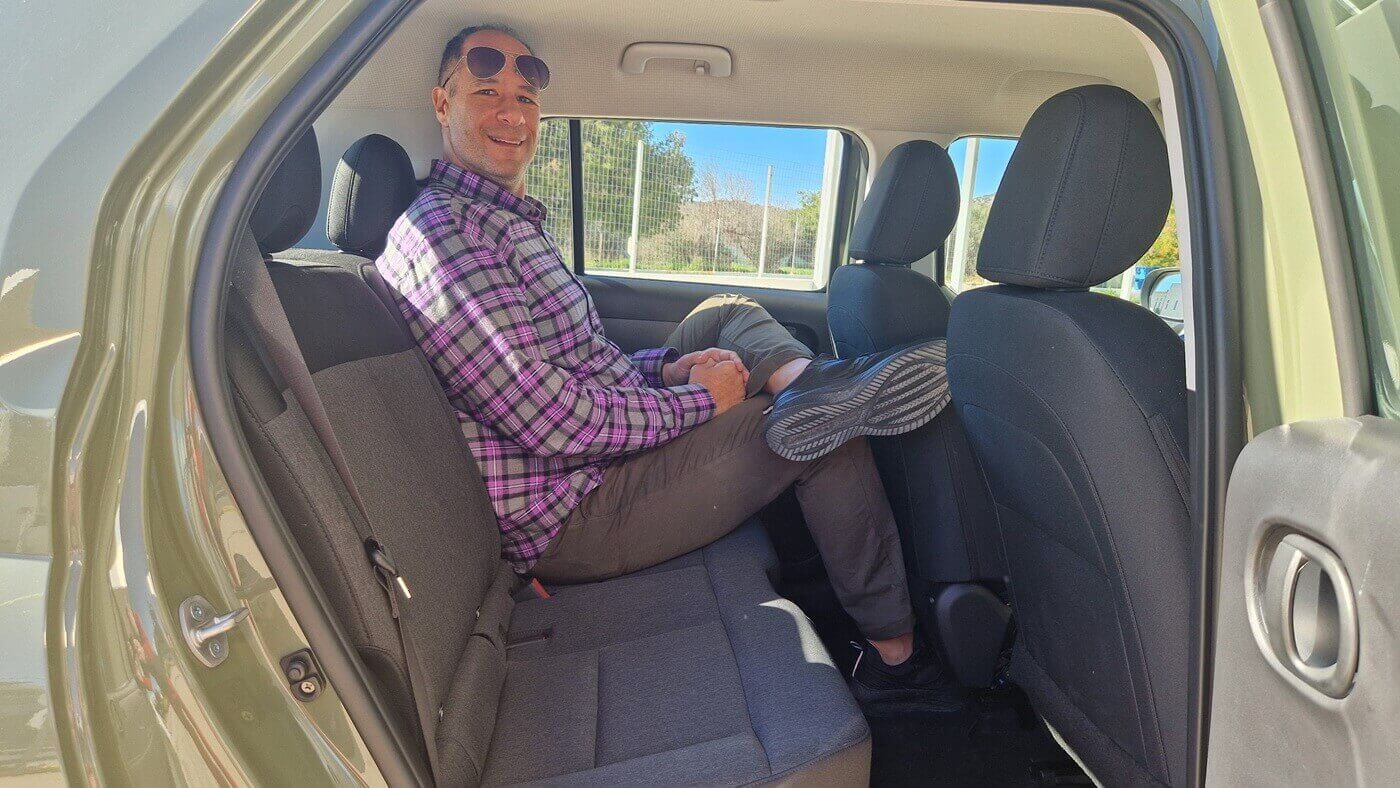 Πάντως, μπορώ να καταλάβω όσους γράφουν διθυράμβους για την ευρυχωρία, αφού το εσωτερικό ύψος είναι άπλετο. Και πίσω από το κάθισμά μου, καθόμουν σταυροπόδι. Η φωτογραφία το επιβεβαιώνει. Δηλαδή αν κάποιος έχει κανονικό ύψος και δεν ταλαιπωρείται όπως εγώ στη θέση οδήγησης, το Inster δεν είναι απλώς το πιο άνετο μικρό, αλλά κι ένα από τα πιο ευρύχωρα μοντέλα μέχρι τα 4,5 μέτρα.