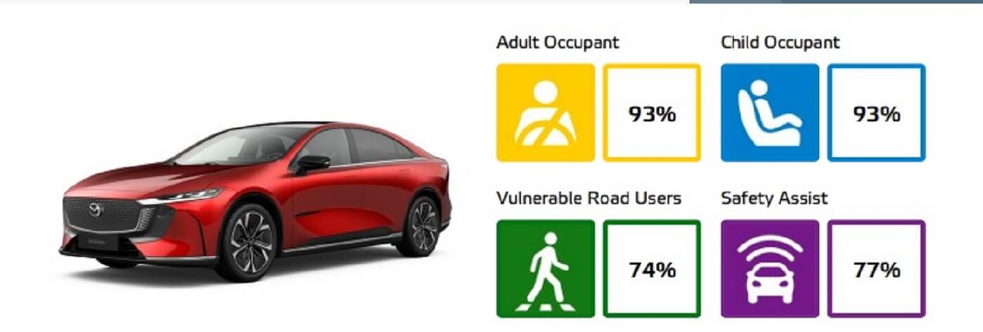 Το ολοκαίνουργιο Mazda 6e πέτυχε τη μέγιστη βαθμολογία πέντε αστέρων από το Euro NCAP στην πλέον πρόσφατη σειρά δοκιμών του Οργανισμού. Στις δύο κατηγορίες προστασίας ενηλίκων και παιδιών, το νέο αμιγώς ηλεκτρικό μοντέλο της Mazda σημείωσε εξαιρετική βαθμολογία 93%. Το Mazda 6e βαθμολογήθηκε επίσης με 74% για την προστασία των ευάλωτων χρηστών του οδικού δικτύου και με 77% για τα συστήματα υποβοήθησης ασφαλείας.
