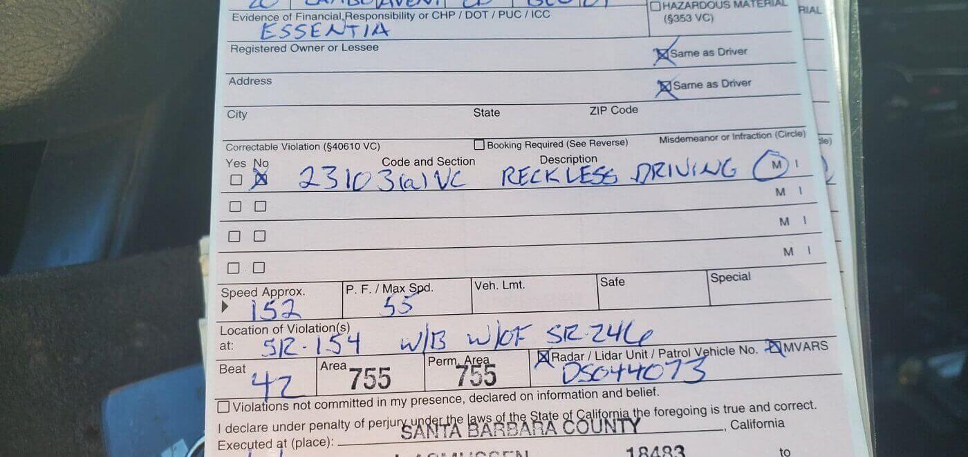 Μια εικόνα του προστίμου που κοινοποιήθηκε στο μέσο κοινωνικής δικτύωσης αποκαλύπτει ότι ο οδηγός κατηγορήθηκε για το πλημμέλημα της απερίσκεπτης οδήγησης. Δεν είναι σαφές πόσα θα πρέπει να πληρώσει σε πρόστιμο ο οδηγός (δε φαίνεται να έχει κι οικονομικό πρόβλημα άλλωστε), αλλά τα μπλεξίματα με τον Νόμο δεν αναμένεται να τελειώσουν με μια χρηματική κατάθεση. «Οι αξιωματικοί του CHP Buellton θα συνεχίσουν να διεξάγουν επιβολή Μηδενικής Ανοχής για να διατηρήσουν τους δρόμους μας ασφαλείς για ΟΛΟΥΣ τους οδηγούς», πρόσθεσε η Αστυνομική Αρχή. «Παρακαλώ βοηθήστε οδηγώντας με σύνεση, χωρίς υπερβολική ταχύτητα, μην πίνετε και πιάνετε το τιμόνι και φορέστε τις ζώνες ασφαλείας σας!».