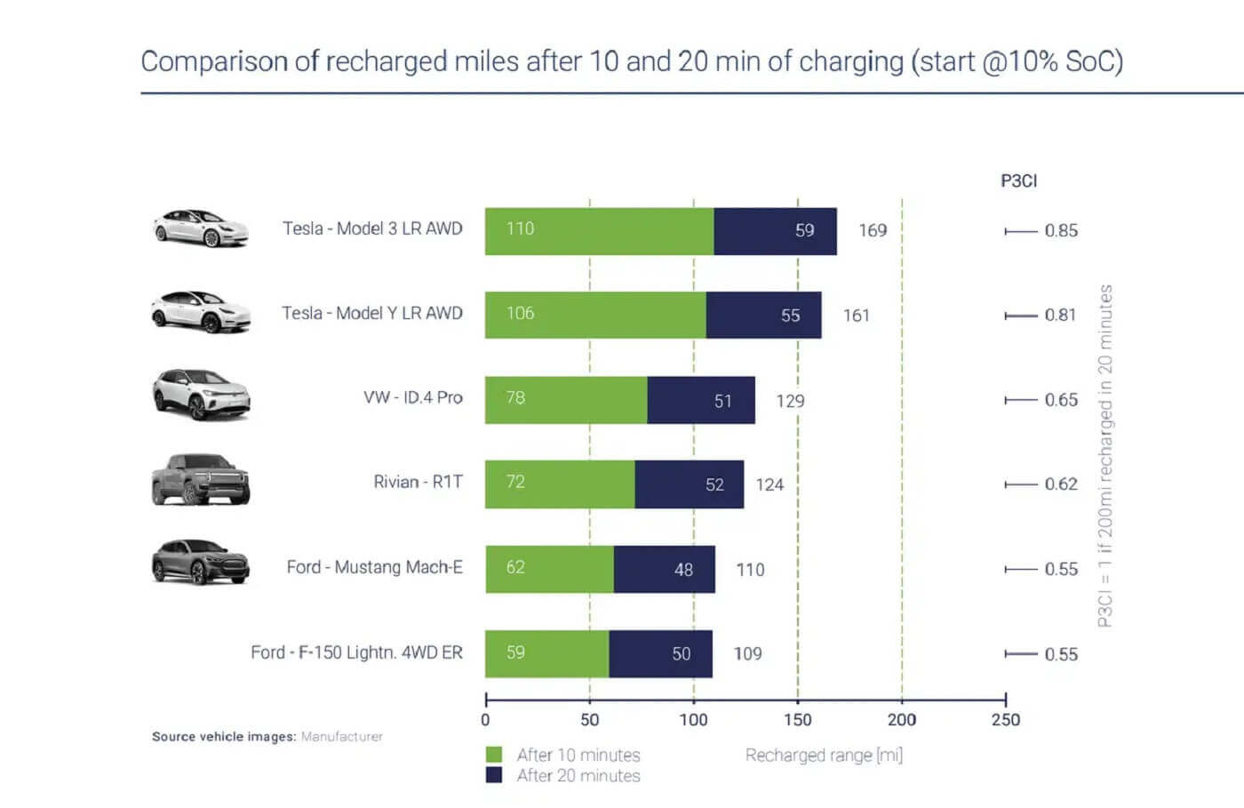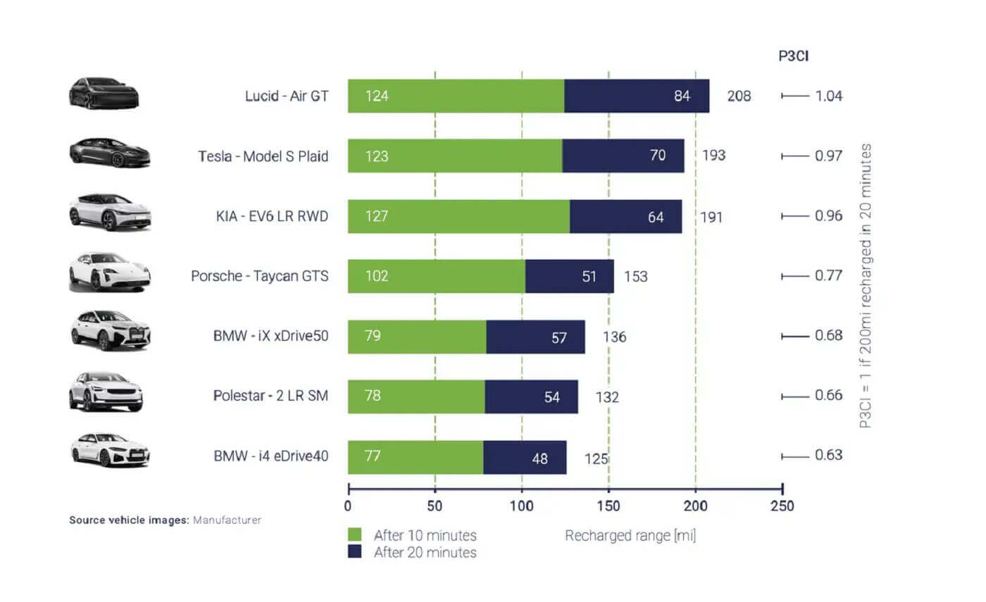 Ο Όμιλος P3 υποστηρίζει ότι η περίοδος φόρτισης των 20 λεπτών είναι μια σημαντική μέτρηση που πρέπει να λάβουν υπόψη οι καταναλωτές, λόγω των επιπτώσεών της στην οδήγηση στον πραγματικό κόσμο. Ενώ οι οδηγοί EV είναι απίθανο να περιμένουν για πλήρη φόρτιση σε κάποιον ταχυφορτιστή, η ποσότητα της αυτονομίας που μπορούν να προσθέσουν σε μια σύντομη περίοδο φόρτισης είναι πιθανό να επηρεάσει τις οδηγικές τους συνήθειες.