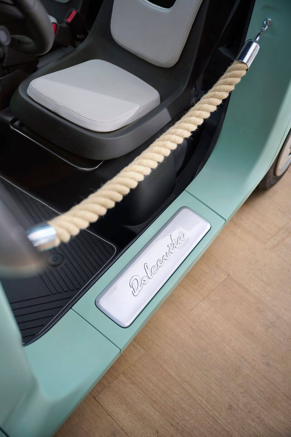 Η κλειστή έκδοση μπορεί να εξατομικευθεί με αυτοκόλλητα σε εφέ ξύλου στις πόρτες, ενώ στην ανοιχτή έκδοση στην οροφή μπορούν να προστεθούν αυτοκόλλητα – με λωρίδες σαν καλοκαιρινή σκηνή –δίνοντας στο αυτοκίνητο μια επιπλέον πινελιά Dolce Vita. Και οι δύο εκδόσεις είναι εξοπλισμένες με το Dolcevita Box, το οποίο είναι μια κομψή και λειτουργική υφασμάτινη θήκη μέσα στην οποία μπορούν να αποθηκευτούν προσωπικά αντικείμενα, καθώς και καλύμματα καθρεφτών με vintage εφέ χρωμίου. Αυτό που τα διαφοροποιεί είναι η προσθήκη των μαρσπιέ με την επιγραφή Dolcevita και το σχοινί στη θέση των θυρών στην ανοιχτή έκδοση, και της αντηλιακής κουρτίνας για την οροφή στην κλειστή έκδοση.