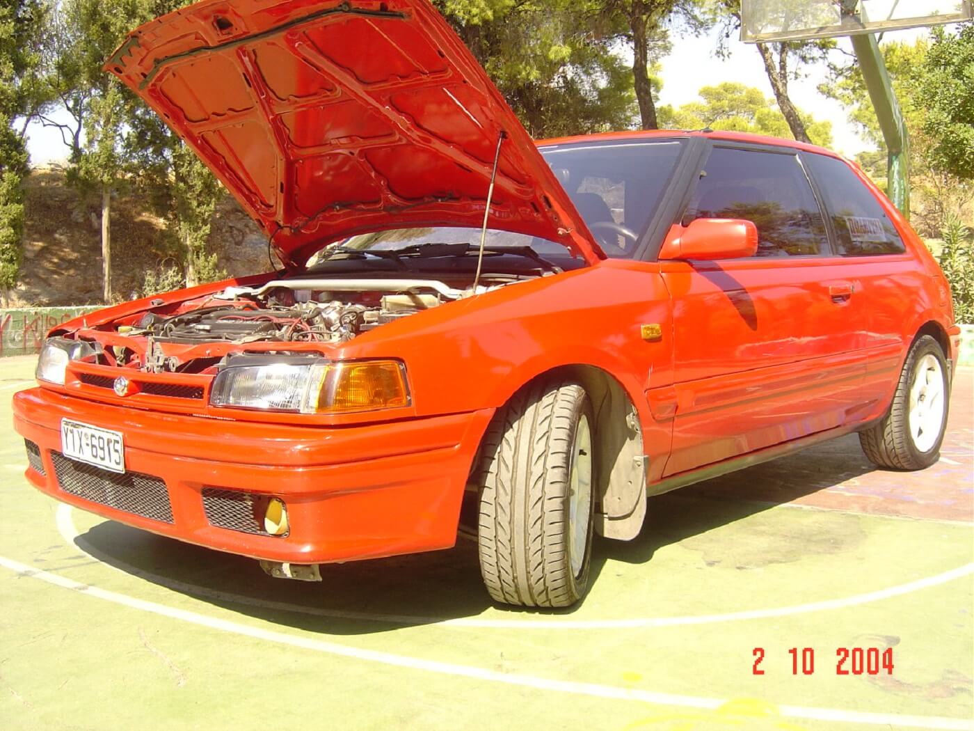 Βασισμένο στο τρίθυρο αμάξωμα του 323, φορούσε κινητήρα 1.840 κ.εκ., τουρμπίνα της ΙΗΙ, τετρακίνηση με επικυκλικό κεντρικό διαφορικό, μπλοκέ συνεκτικής σύζευξης πίσω (Viscous LSD), δισκόφρενα σε όλους τους τροχούς, κοντή κρεμαγέρα (2.5 στροφές από άκρη σε άκρη), παροιμιώδη αξιοπιστία κι επίσης παροιμιώδη αποτυχία στα Rally. Σε παγκόσμιο επίπεδο, το καλύτερο αποτέλεσμα ήταν πρωτάθλημα Ν το 1991 και νομίζω τρίτη θέση σε αγώνα στο Group Α. Εκτός από τον Tommi Makinen, νομίζω ότι κι ο Salonen είχε τρέξει με ένα από αυτά, αλλά κι ο Colin McRae στην αρχή της καριέρας του. Όσον για την Ελλάδα, θα θυμάστε ότι με αυτά έτρεχε ο Γιαγνίσης και ο συγχωρεμένος πλέον Παύλος Μοσχούτης.