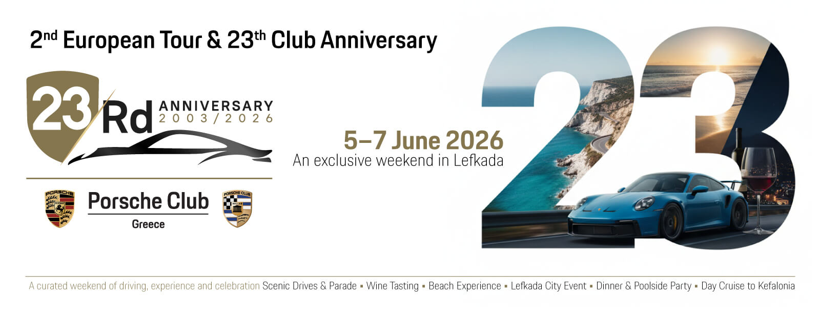 Το Porsche Club Ελλάδος συμπληρώνει 23 χρόνια συνεχούς παρουσίας και σηματοδοτεί την επέτειο αυτή με μια διοργάνωση ουσιαστικού χαρακτήρα, που συνδυάζει την οδηγική εμπειρία με την κοινωνική προσφορά. Από τις 5 έως τις 7 Ιουνίου 2026, η Λευκάδα φιλοξενεί το επετειακό τριήμερο του Club, με κορύφωση την εκδήλωση του Σαββάτου 6 Ιουνίου 2026 στον χώρο στάθμευσης του Λιμενικού Ταμείου απέναντι από το Δημαρχείο, σε συνδιοργάνωση με τον Δήμο Λευκάδας, ο οποίος από την πρώτη στιγμή αγκάλιασε την πρωτοβουλία και στήριξε ενεργά την συγκεκριμένη δράση. Η συμβολή τοπικών φορέων και εταιρειών, που στηρίζουν την δράση ενισχύει τον χαρακτήρα της διοργάνωσης ως μιας συλλογικής πρωτοβουλίας με ευρύτερο αποτύπωμα.