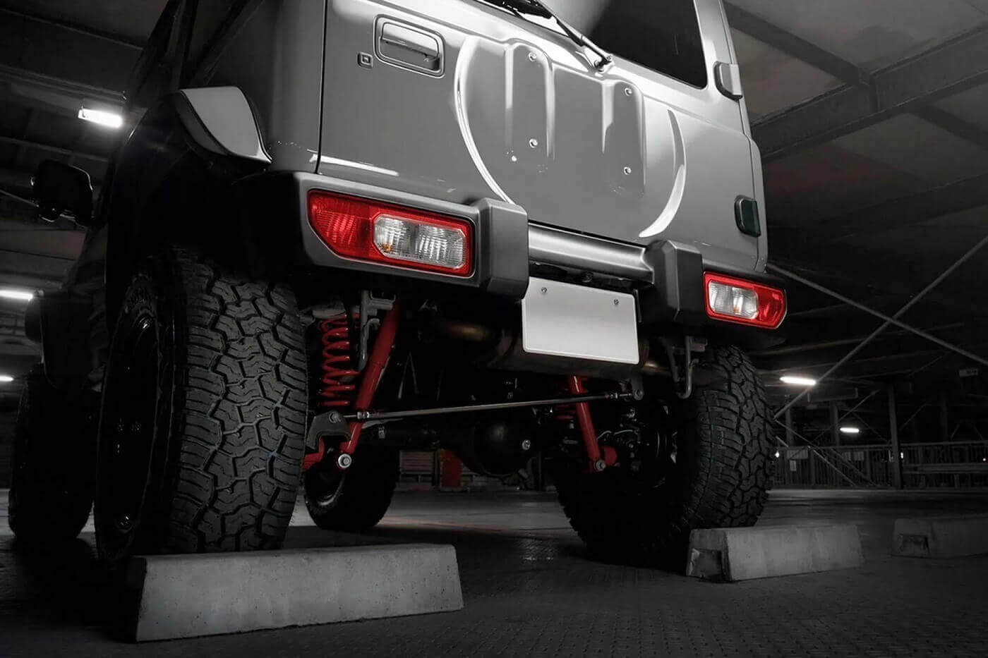 Το κιτ ανύψωσης της ανάρτησης αυξάνει την απόσταση από το έδαφος κατά 38 χιλιοστά στη στενή έκδοση ή κατά 76 στην πιο φαρδιά και συνδυάζεται με ένα νέο σετ ζάντες αλουμινίου με ελαστικά Mud/Terrain της Yokohama. Παρά τους τέσσερις απολήξεις της εξάτμισης σε ένα από τα μοντέλα που παρουσιάστηκαν στο Nagoya Auto Festival 2023, δεν υπάρχουν αλλαγές κάτω από το καπό. Αυτό σημαίνει ότι το Jimny διατηρεί τον ατμοσφαιρικό τετρακύλινδρο κινητήρα των 1.5 λίτρων που αποδίδει 102 ίππους ή τον υπερτροφοδοτούμενο τρικύλινδρο κινητήρα των 658 κ.εκ. απόδοσης 64 ίππων.