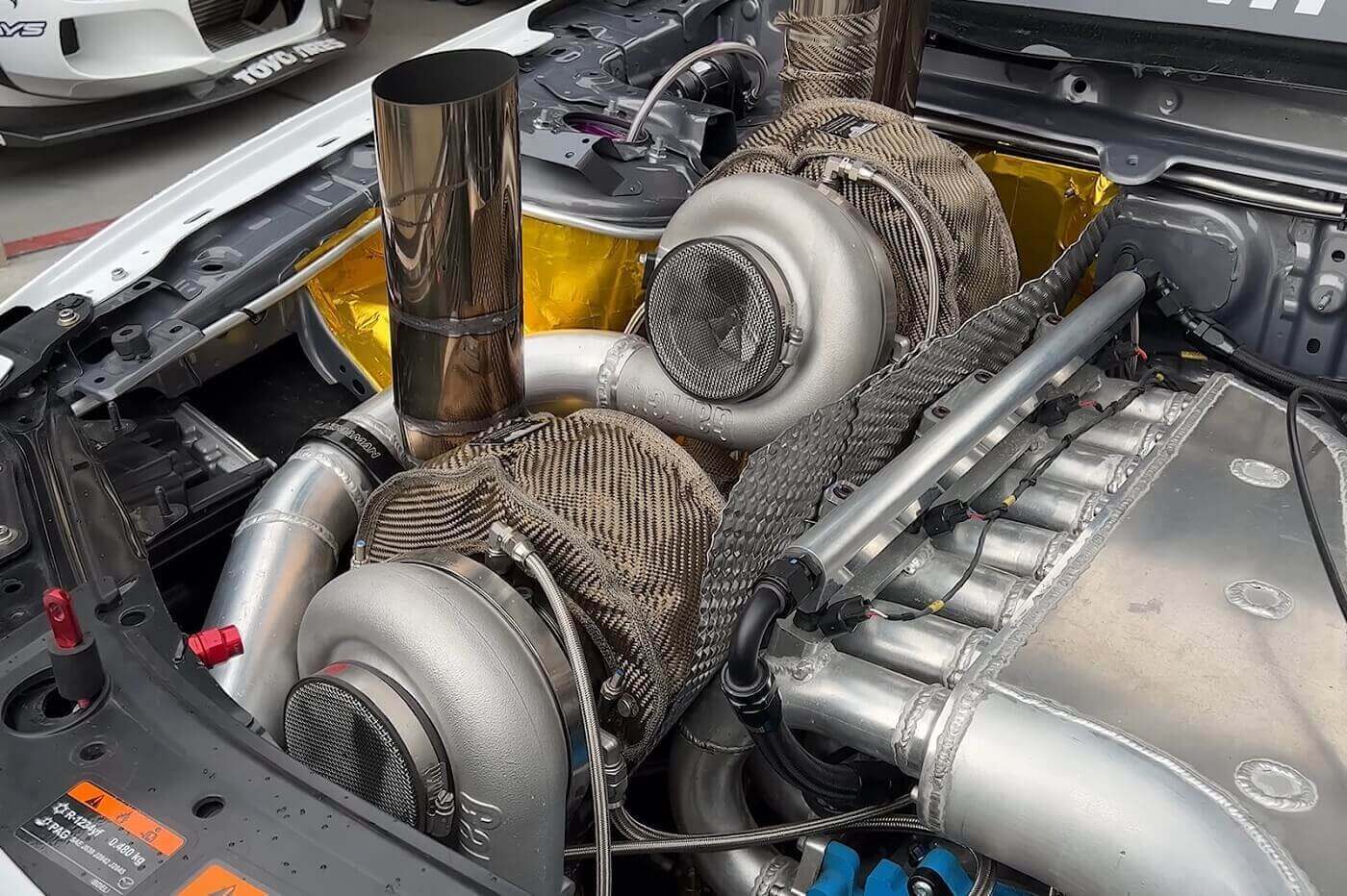 Για να καρποφορήσει η προσπάθειά του, το 3άρι χρησιμοποιεί περιστροφικό κινητήρα Wankel και μπορεί να αποδώσει 1.400 ίππους. Για να βγει βέβαια τέτοια ισχύς, δε μιλάμε για έναν απλό Wankel αλλά τέσσερις ρότορες με δύο θηριώδεις τουρμπίνες Garrett G40. Επειδή όμως υπήρξαν προβλήματα υπερθέρμανσης, ο κινητήρας έχει περιοριστεί στους 1.000 ίππους. Θα περιμένατε βέβαια ότι θα ήταν τετρακίνητο και θα ήταν απόλυτα λογικό. Όχι για τον Mad Mike… Η τερατώδης δύναμη κατευθύνεται στους πίσω τροχούς και μόνον, αν και στην ανάβαση θα κάνει μια παραχώρηση και θα χρησιμοποιήσει σλικ ελαστικά της Toyo για βέλτιστη πρόσφυση κι αεροδυναμικά βοηθήματα για μέγιστη downforce.