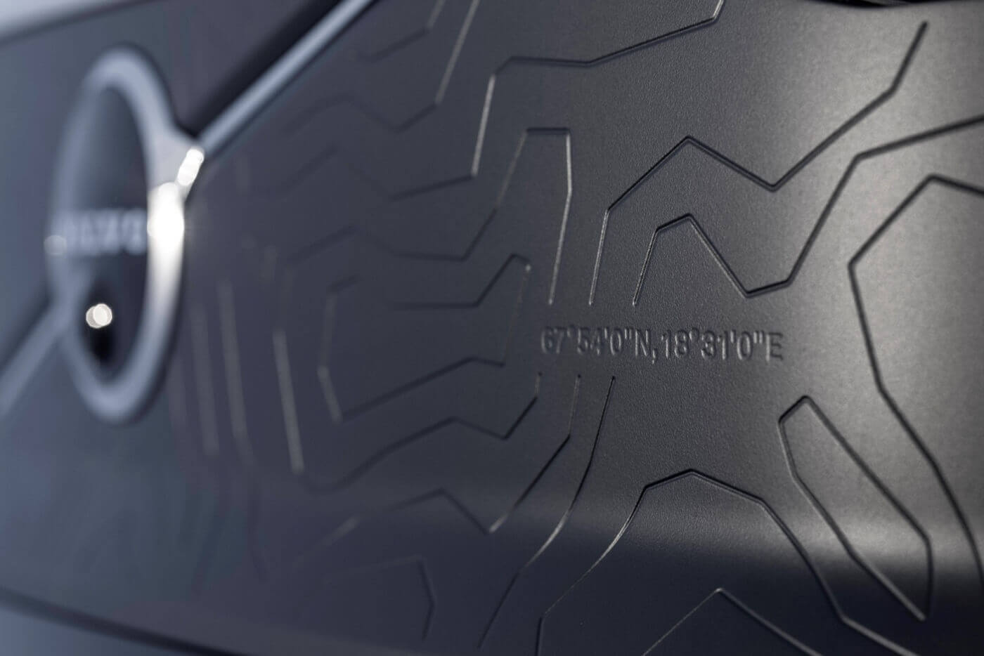 Η μάσκα και το πίσω μέρος του αυτοκινήτου έχουν ένα ειδικό σκούρο χρώμα, με το εμπρός τμήμα να αποτυπώνει περίτεχνα την τοπογραφία της οροσειράς Kebnekaise στην αρκτική Σουηδία – η οποία αποτελεί έμπνευση για πολλούς από τους σχεδιαστές μας.